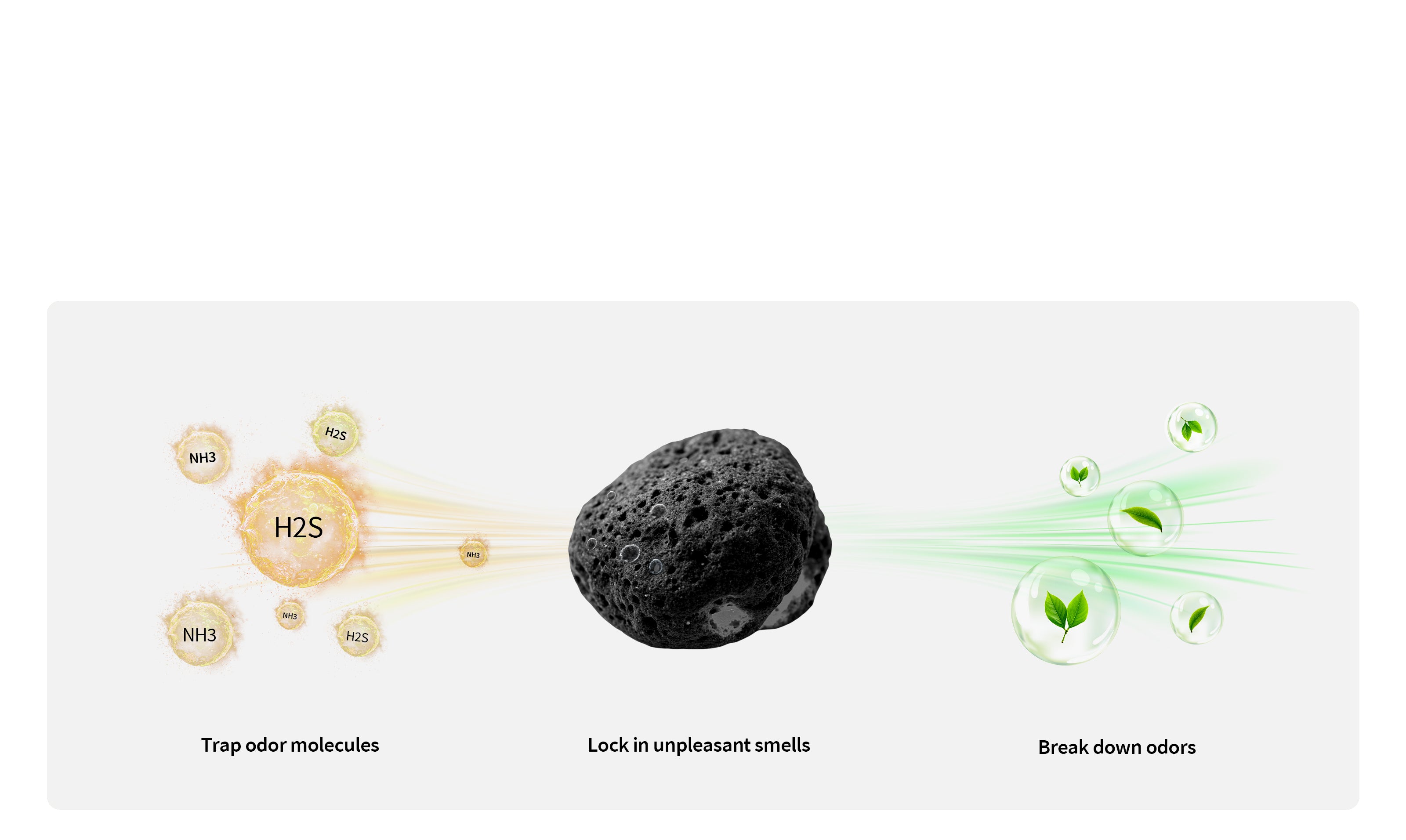 3 types of odor-controlling particles: