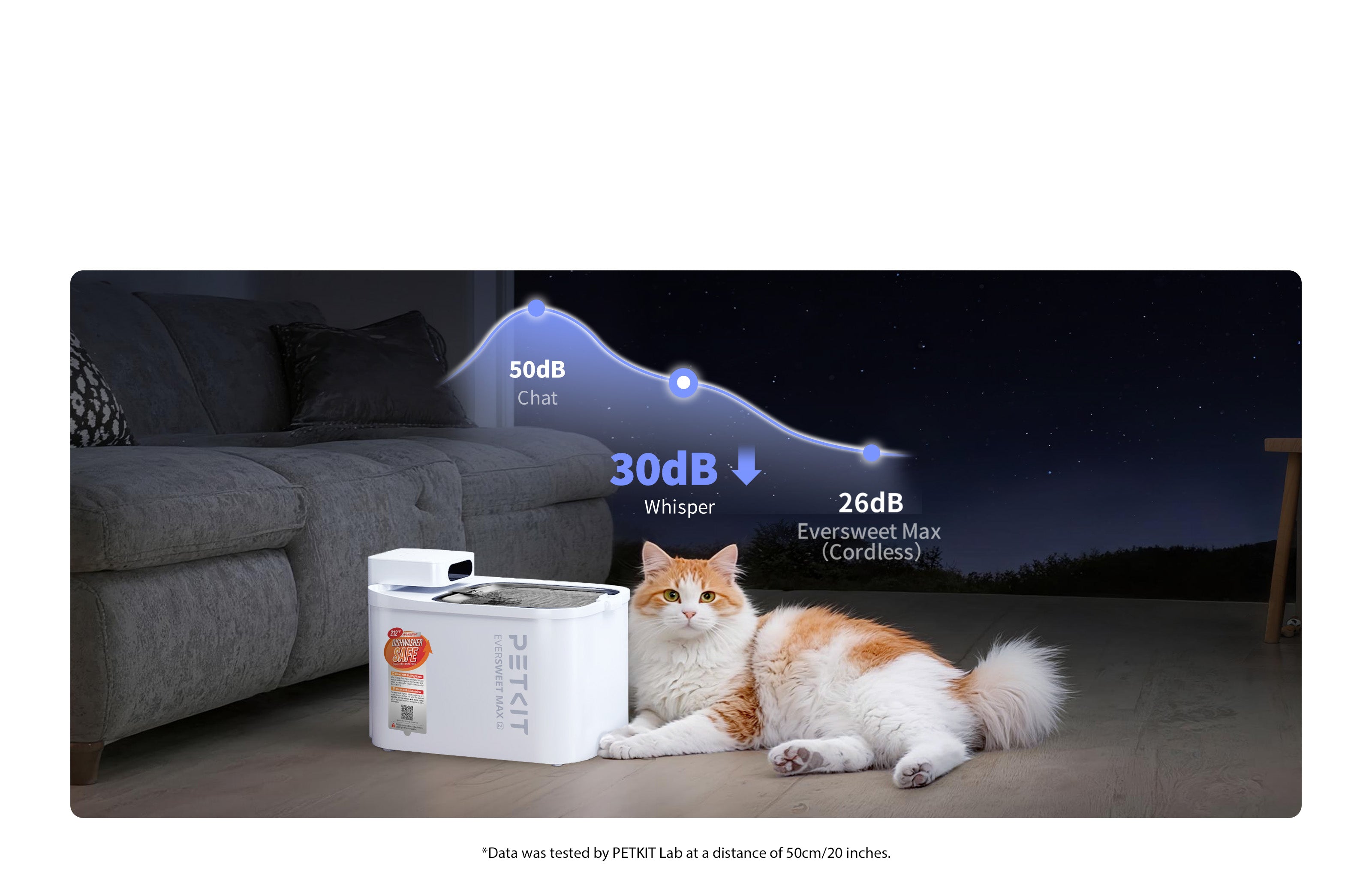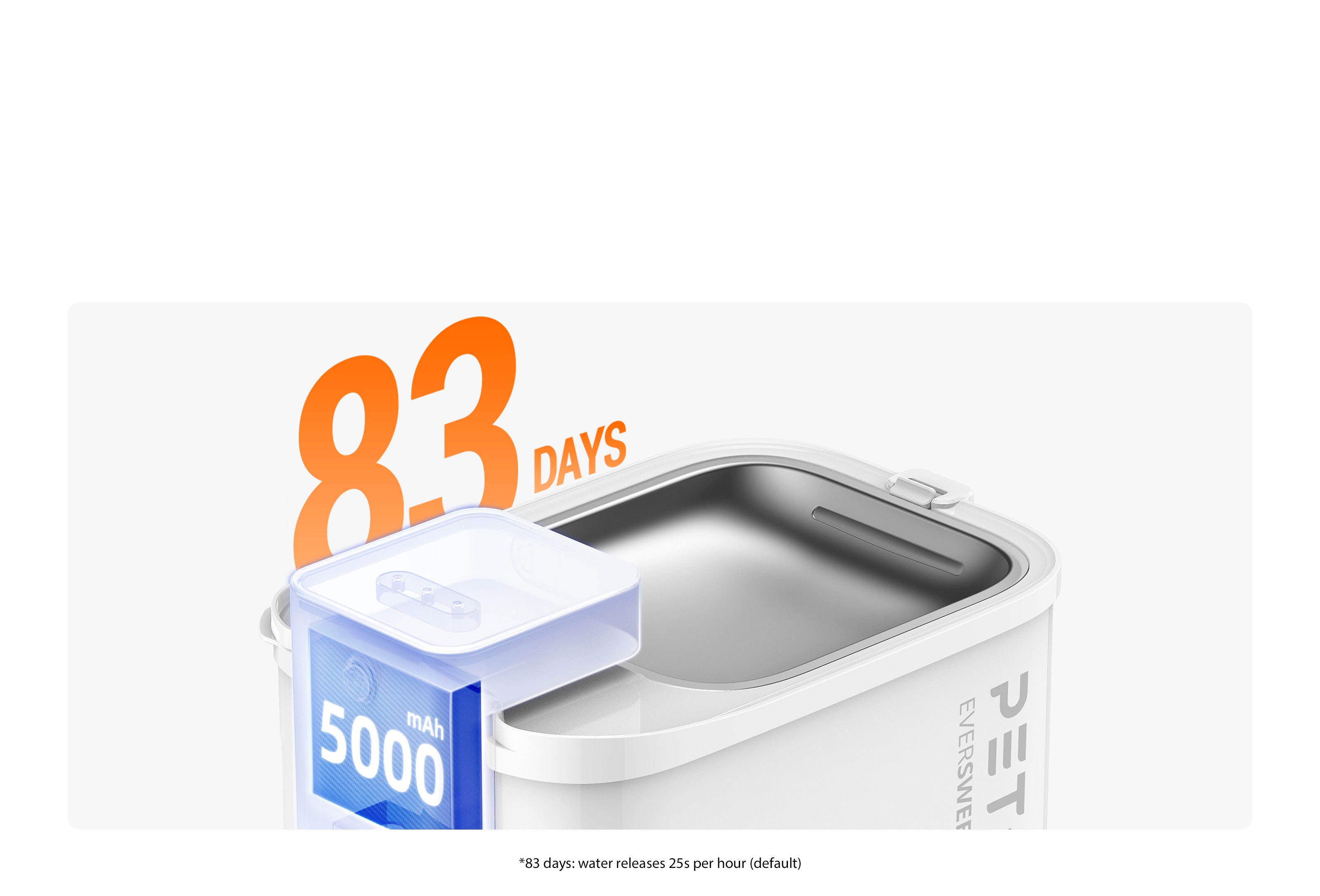 With large capacity of 101oz/3L, EVERSWEET MAX 2 (CORDLESS) can offer 1 cat hydrate fresh water for 2 weeks. Each pet's daily water intake is different, so the water refilling frequency will vary.