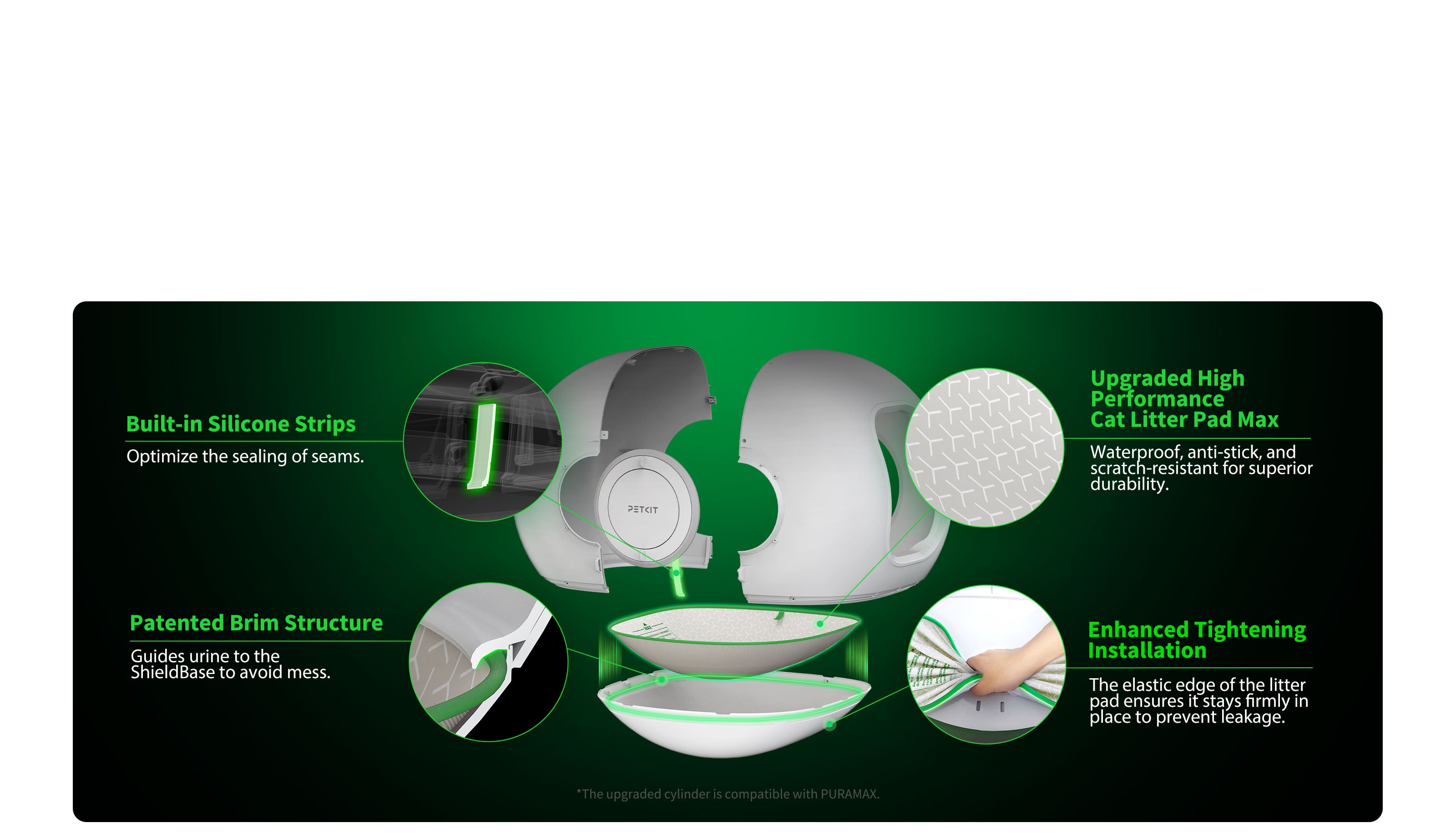 PURAMAX 2 redefines efficient maintenance and ensures anti-leakage with an upgraded sealed cylinder. Designed for multi-cat households, its spacious interior, advanced triple deodorization, and innovative xSecure structure unleash a hygienic and safe litter box experience.
